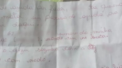 “Pede ajuda por favor. Tá querendo me matar. Eu preciso de ajuda para sair daqui. Número da minha mãe, manda vir me buscar. Estou aqui sozinha com minha filha e estou com medo. Ele está com meu celular, para não ligar“, dizia a carta.