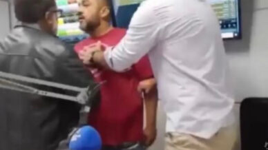 “Daqui para frente, você presta atenção no que você fala. Você esquece meu irmão. Você esquece minha família”, fala o homem em meio ao ato de agressão.