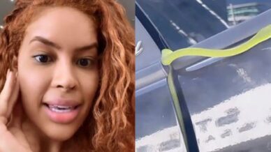 Nos Stories do Instagram, a influenciadora compartilhou vídeos nos quais detalha o incidente e exibe registros do animal próximo à porta traseira esquerda do carro. Após fazer uma pesquisa, Sthe suspeita que o animal, de cor verde, possa ser venenoso.