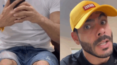 Debochado! Ex-BBB Rodolffo ironiza piada após mostrar as pernas finas: “Corpo bonito”