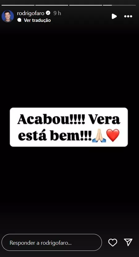 “Acabou! Vera está bem!”, postou ele nos Stories do Instagram, com aquele alívio no coração que a gente sente quando tudo dá certo.