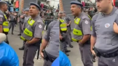 No meio dessa situação, o ambulante tenta manter a calma e responde pra ele: “Você não sabe trabalhar. Eu não tenho arma, nem nada. Você não vai atirar em mim. Eu não estou indo pra cima de você.” Mas o policial, sem medir as palavras, retruca com algo tipo: “Você não está no seu país” e ainda solta um “Ajuda seu amiguinho aí”. E sabe o que é pior? Essa abordagem foi super agressiva, e tudo isso foi gravado!