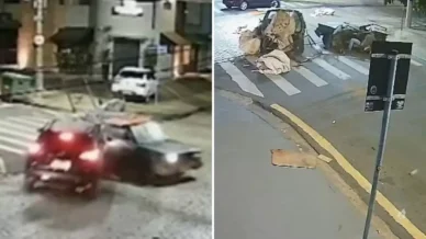 Câmeras de segurança conseguiram registrar um momento bem surpreendente durante um acidente: um carro se partiu ao meio depois de bater em outro veículo, mas, incrivelmente, continuou se movendo.