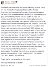 O governo iraniano, sob a liderança do presidente Masoud Pezeshkian, declarou um luto nacional de 40 dias e sete dias de feriado geral. O gabinete do governo expressou profundo pesar pela perda de Khamenei, caracterizando sua morte como resultado de um ataque brutal do governo dos Estados Unidos e do regime sionista. A nota emitida pelo governo descreveu o evento como um “crime” que mudará o curso da história do mundo islâmico e do xiismo.